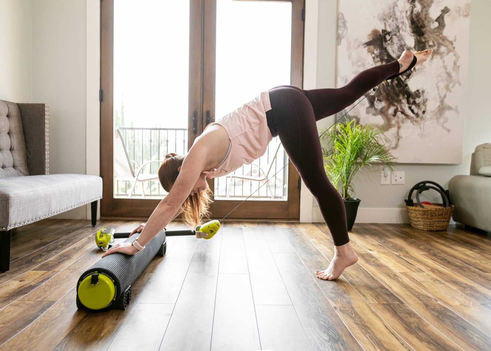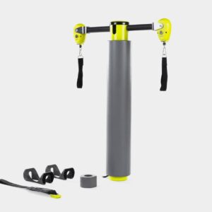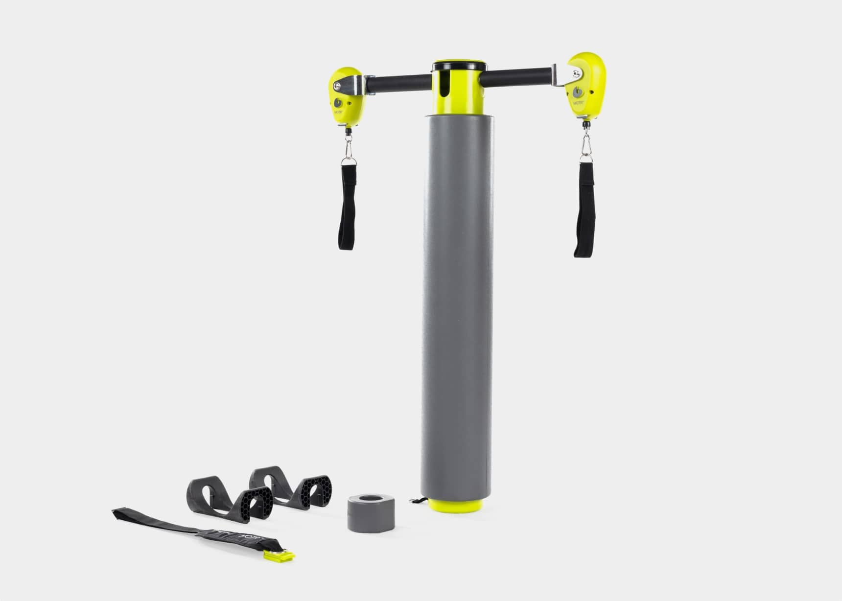 Developed by Pilates instructor and fitness enthusiast Darya Bronston, the MOTR is a portable full body training system. The innovative cylinder base is padded for pre- and post-training rolling, stretching, and fascia release. The resistance arm can be attached to the base for a variety of standing, supine, and kneeling exercises, adding resistance to increase or decrease the level of difficulty.