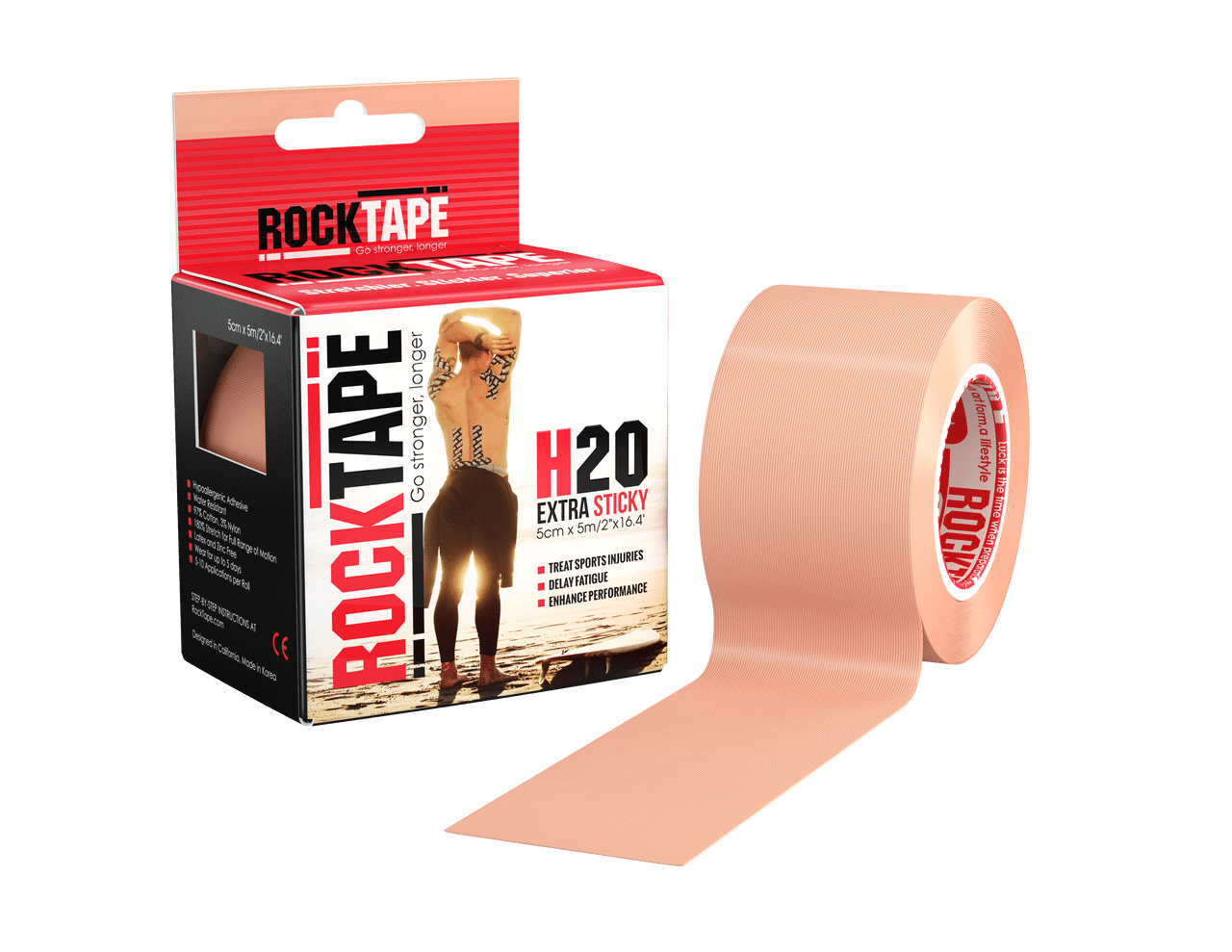 RockTape skapades för rehab, träning och tävling. Av erfarenhet vet vi att vanlig medicinsk tejp ofta misslyckas under extrema förhållanden, så vi utvecklade en starkare, mer töjbar och mer klistrig kinesiologitejp som även sitter kvar under extrema förhållanden.
