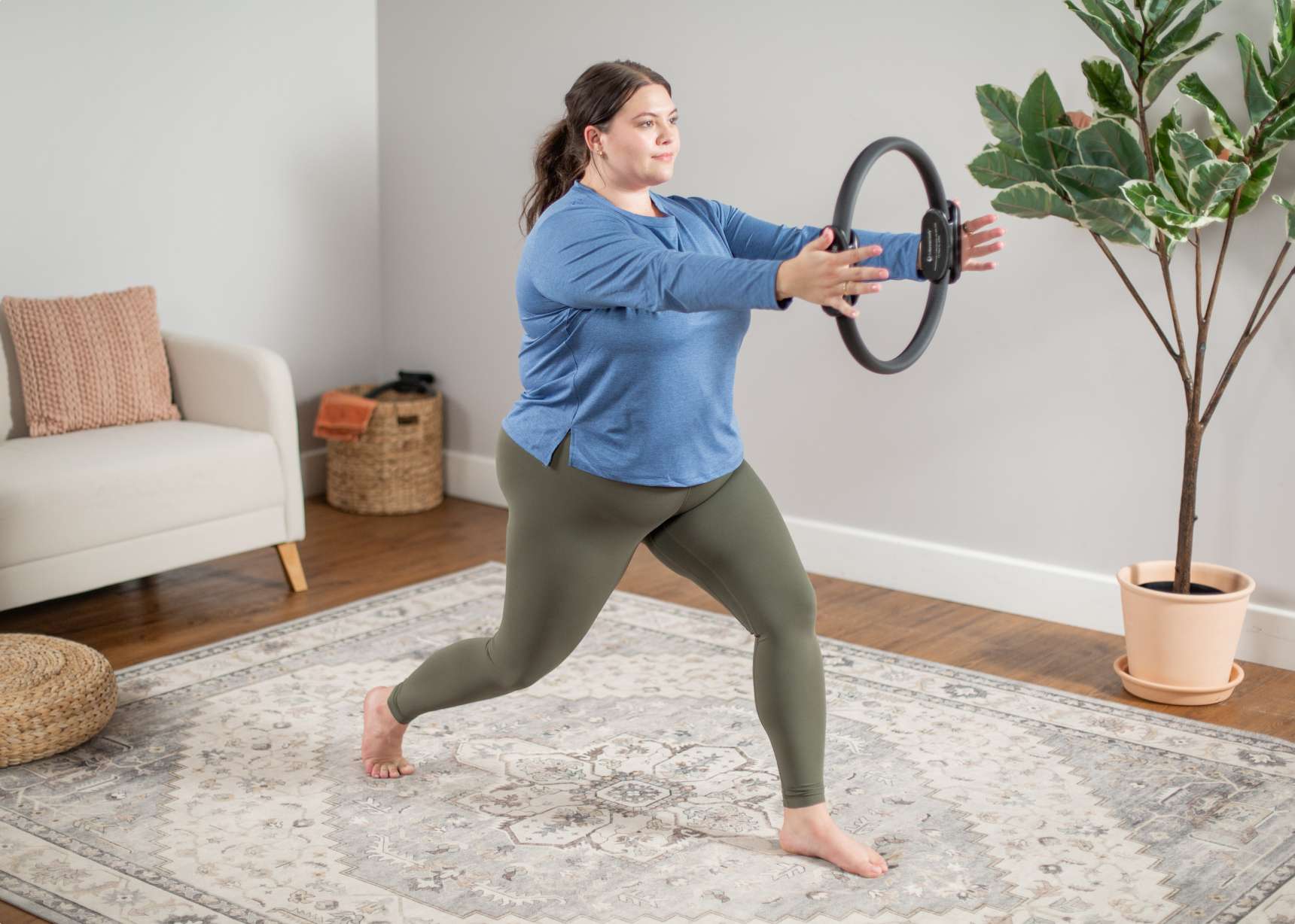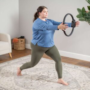 Great for upper and lower body work, building strength and toning, our best-selling Ultra-Fit Circle is made of flexible plastic with a soft, rubberized shell and designed for home or studio use. Padded handles on both the inside and the outside of the ring offer superior comfort. Resistance is approximately equivalent to a 3-Band Spring Circle. Diameter: 15″ (38 cm).